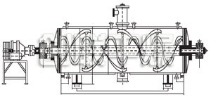 本機是一種新穎臥式間歇式真空干燥設備,濕物料經傳導蒸發,帶有刮板攪拌器不斷清除熱面上的物料,并在容器內推移形成循環流,水份蒸發后由真空泵抽出。